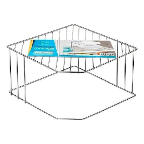 2X Organizador Prato Prateleira Cantoneira Cozinha Cromado 1