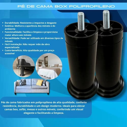 2x Pé Cama Box Agradecemos imensamente sua confiança em nossos produtos Trabalhamos com dedicação para garantir a mais alta qualidade em cada item. Estamos sempre à disposição para atendê-lo a com excelência e proporcionar a melhor experiência de compra possível. Marca: Não Informado