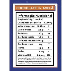 Ingredientes: proteína da ervilha, proteína do arroz, cacau, proteína da lentilha, leite de coco, vitamina b12 metilcobalamina , estabilizante goma guar, aroma idêntico ao natural de avelã, edulcorante stevia.