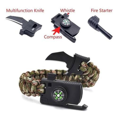 2X Pulseira Sobrevivência Faca ,Bussula, Apito ,