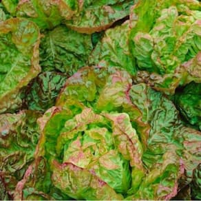 * Alface de porte médio, com folhas repolhudas e firmes, de coloração verde e marrom claro.