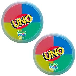 Massinha que estica, semelhante a uma slime, pula e pode ser modelada! Com as cores icônicas do jogo UNO. Há várias brincadeiras que as crianças irão adorar.