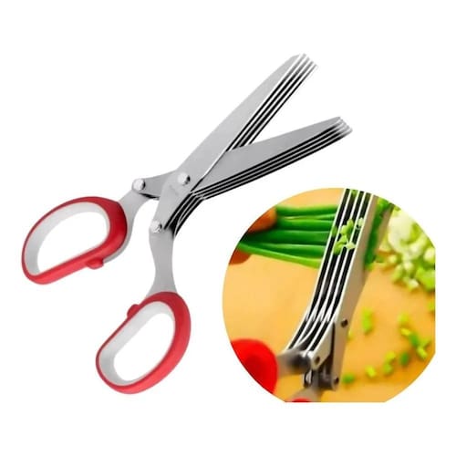 2X Tesoura 5 Lâminas Cortar Fatiar Picar Tempero Ervas Cozin