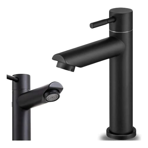 2X Torneira Lavatório Preta Água Fria Aço Inox Fosca Banheir