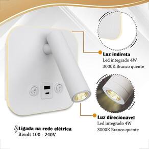 - O grande diferencial está na sua entrada USB e USB-C integradas, que permitem carregar seus dispositivos móveis com facilidade, diretamente na arandela - ideal para quem busca praticidade no dia a dia.