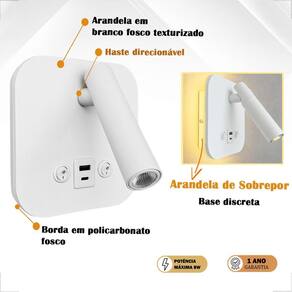 - Arandela sobrepor LED Branca com USB e USB-C - Design Moderno e Funcionalidade na Medida Certa