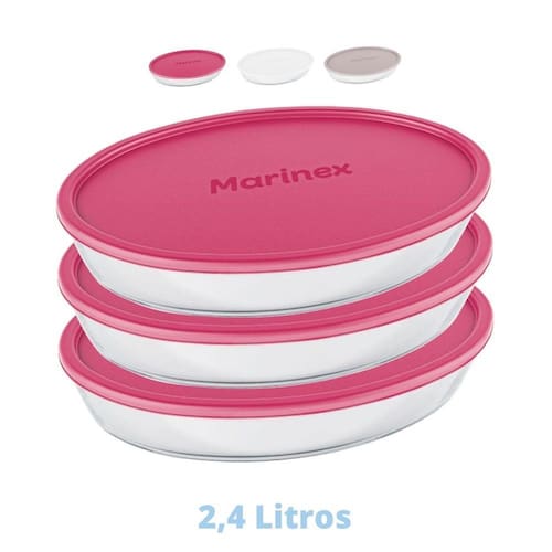 3 Assadeiras 2,4 Litros Oval com Tampa Marinex Nadir Figueiredo
