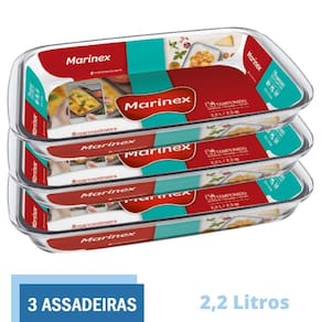 3 Assadeiras 2,2 Litros Retangular Marinex Nadir Figueiredo