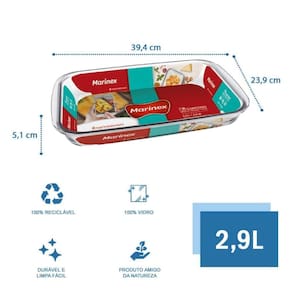 3 Assadeiras 2,9 Litros Retangular Marinex Nadir Figueiredo
