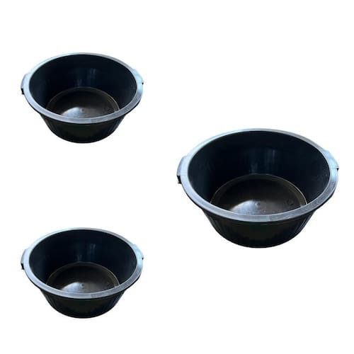 Kit com 3 unidades bacia plástica reforçada 35 litros profissional preta com manopla