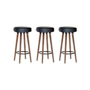 3 Bancos Banquetas Roma Slim Redonda Alta 70cm Preto - Preto