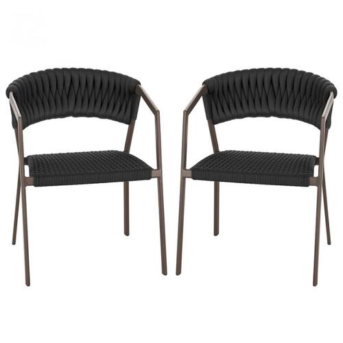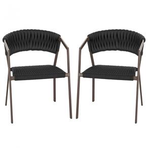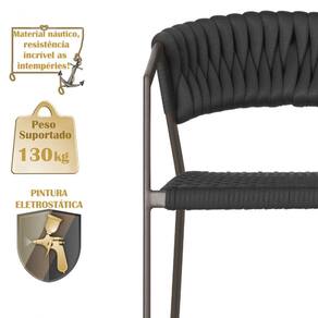 3 Cadeiras Atenas Tricô Náutico e Alumínio com Proteção UV para Varanda, Cozinha, Área, Jardim - Pintura Marrom - Preto
