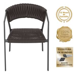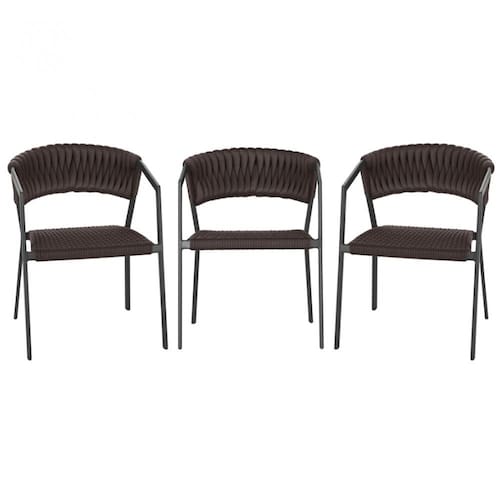 3 Cadeiras Atenas Tricô Náutico e Alumínio com Proteção UV para Varanda, Cozinha, Área, Jardim - Pintura Preto - Marrom