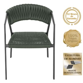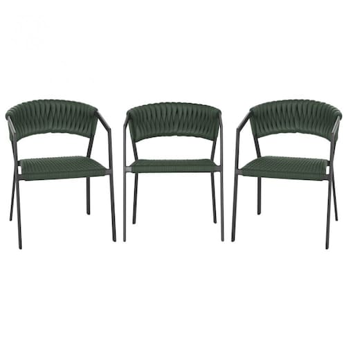 3 Cadeiras Atenas Tricô Náutico e Alumínio com Proteção UV para Varanda, Cozinha, Área, Jardim - Pintura Preto - Verde