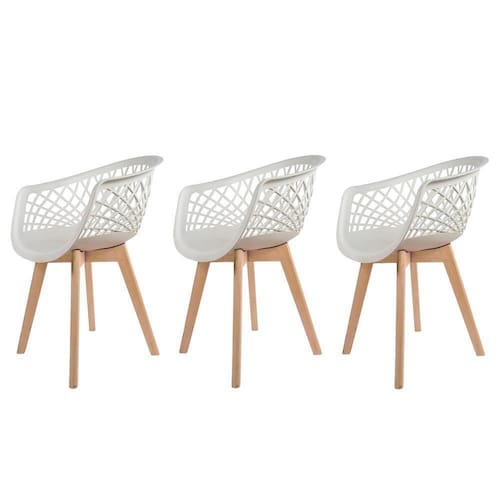 Kit 3 Poltronas Cadeiras Para Mesa De Jantar Cozinha Sala Quarto Penteadeira Escrivaninha Varanda Area Gourmet Web Branca Wood Base Madeira