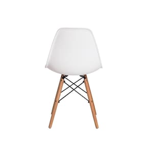 Faixa de Peso Suportado (Kg): 120 | Altura (cm): 82 | Largura (cm): 46 | Material: Polipropileno | Modelo: Eames Eiffel | Pés (Material): Madeira | Peso liq. do produto (Kg): 4 | Profundidade (cm): 54 | Indicação: Cozinha, Escritório, Sala de Jantar | Garantia: 90 dias após o recebimento do produto Cor: Branco