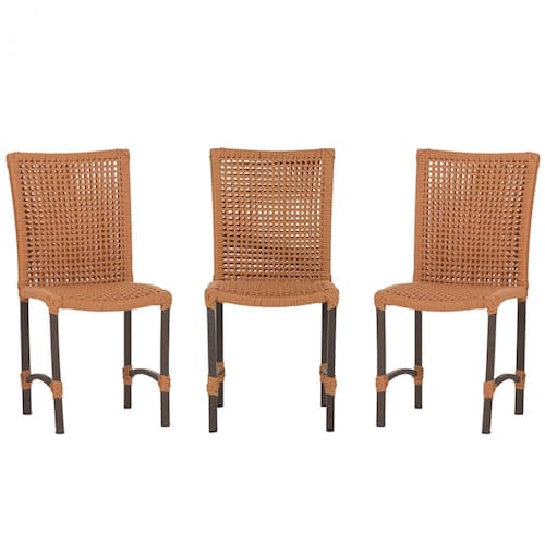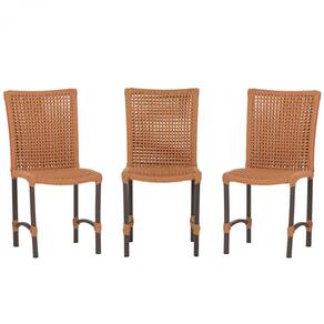 3 Cadeiras de Jantar Cannes de Alumínio com Pintura Marrom e Trama Tela de Corda Náutica - Laranja