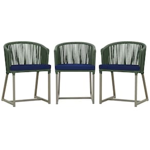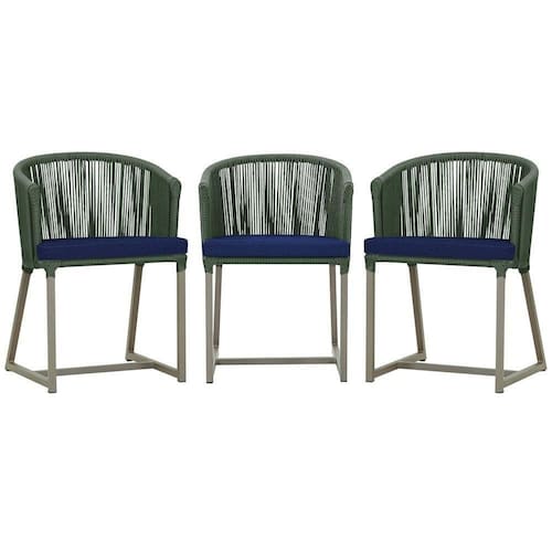 3 Cadeiras De Jantar Noronha Fendi Corda Náutica E10 Trama Verde