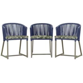 3 Cadeiras De Jantar Noronha Fendi Corda Náutica E5 Trama Azul