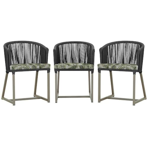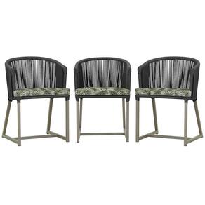 3 Cadeiras De Jantar Noronha Fendi Corda Náutica E5 Trama Preto