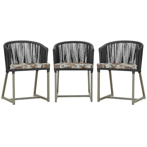 3 Cadeiras De Jantar Noronha Fendi Corda Náutica E6 Trama Preto
