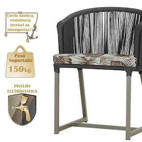 Descubra a Elegancia e Durabilidade da Cadeira Noronha. Combinando estilo e resistencia, esta cadeira traz o melhor do design contemporaneo em aluminio com micro pintura e acabamento em corda nautica. O estofado impermeavel completa o conforto e a funcionalidade, tornando-a ideal para ambientes externos e internos. Qualidade e elegancia que transformam qualquer espaco. Adicione um toque de sofisticacao e conforto ao seu espaco com a cadeira Noronha.