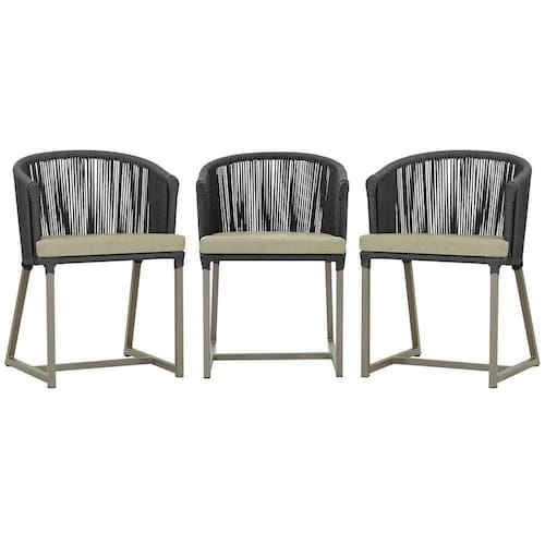 3 Cadeiras De Jantar Noronha Fendi Corda Náutica E7 Trama Preto