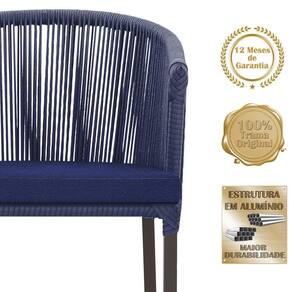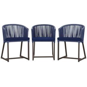 3 Cadeiras De Jantar Noronha Marrom Corda Náutica E10 Trama Azul
