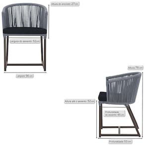 Antes de comprar o seu produto verifique as medidas, o onde pretende instalar e se necessario contratar o servico de um qualificado. Produto conhecido como: Cadeira Noronha, Cadeira de aluminio, Corda nautica, Estofado impermeavel, Moveis de exterior, Cadeira resistente a agua, Design moderno em Cadeira, Cadeira para area externa, Cadeira de jardim, Moveis para varanda, Cadeira duravel, Cadeira de alta qualidade, Conforto em Cadeira, Cadeira elegante.