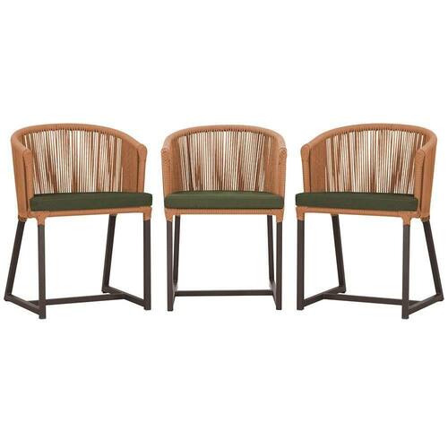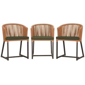 3 Cadeiras De Jantar Noronha Marrom Corda Náutica E13 Trama Terra Cota