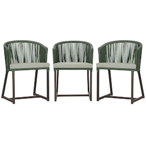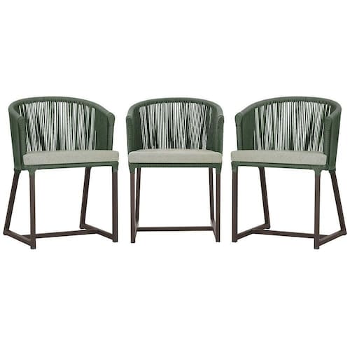 3 Cadeiras De Jantar Noronha Marrom Corda Náutica E3 Trama Verde