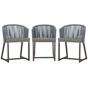 3 Cadeiras De Jantar Noronha Marrom Corda Náutica E8 Trama Prata