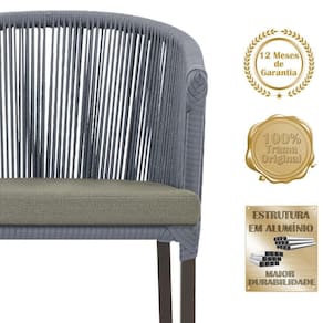 Descubra a Elegancia e Durabilidade da Cadeira Noronha. Combinando estilo e resistencia, esta cadeira traz o melhor do design contemporaneo em aluminio com micro pintura e acabamento em corda nautica. O estofado impermeavel completa o conforto e a funcionalidade, tornando-a ideal para ambientes externos e internos. Qualidade e elegancia que transformam qualquer espaco. Adicione um toque de sofisticacao e conforto ao seu espaco com a cadeira Noronha.