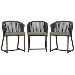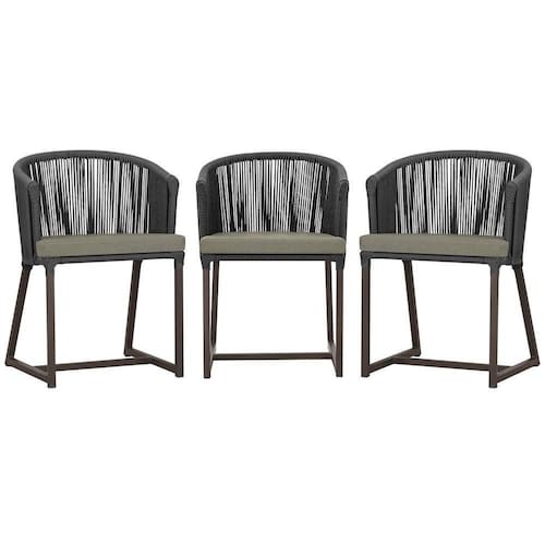 3 Cadeiras De Jantar Noronha Marrom Corda Náutica E8 Trama Preto