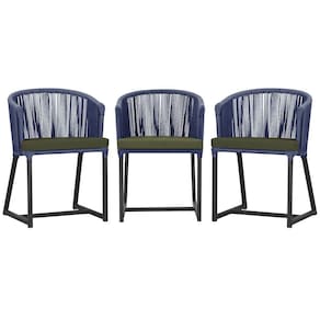 3 Cadeiras De Jantar Noronha Preta Corda Náutica E13 Trama Azul