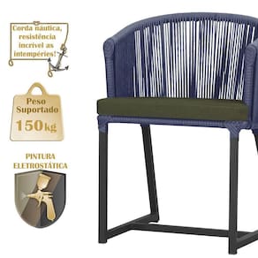 Descubra a Elegancia e Durabilidade da Cadeira Noronha. Combinando estilo e resistencia, esta cadeira traz o melhor do design contemporaneo em aluminio com micro pintura e acabamento em corda nautica. O estofado impermeavel completa o conforto e a funcionalidade, tornando-a ideal para ambientes externos e internos. Qualidade e elegancia que transformam qualquer espaco. Adicione um toque de sofisticacao e conforto ao seu espaco com a cadeira Noronha.