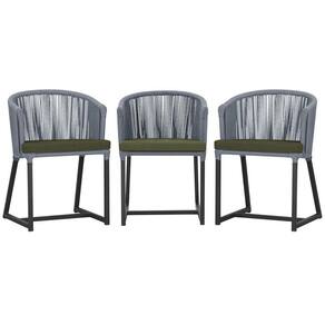 3 Cadeiras De Jantar Noronha Preta Corda Náutica E13 Trama Prata