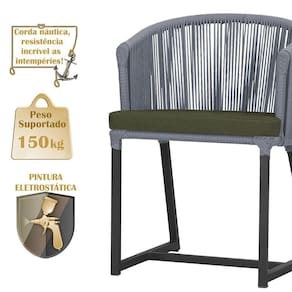 Descubra a Elegancia e Durabilidade da Cadeira Noronha. Combinando estilo e resistencia, esta cadeira traz o melhor do design contemporaneo em aluminio com micro pintura e acabamento em corda nautica. O estofado impermeavel completa o conforto e a funcionalidade, tornando-a ideal para ambientes externos e internos. Qualidade e elegancia que transformam qualquer espaco. Adicione um toque de sofisticacao e conforto ao seu espaco com a cadeira Noronha.