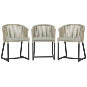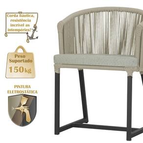 3 Cadeiras De Jantar Noronha Preta Corda Náutica E3 Trama Rami