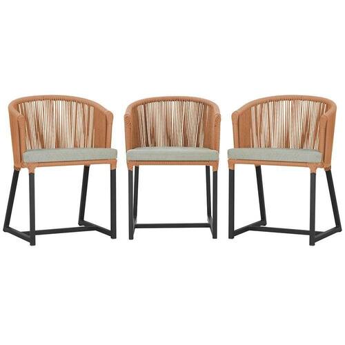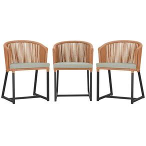 3 Cadeiras De Jantar Noronha Preta Corda Náutica E3 Trama Terra Cota