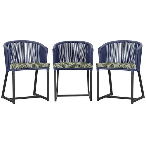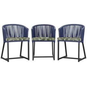 3 Cadeiras De Jantar Noronha Preta Corda Náutica E5 Trama Azul