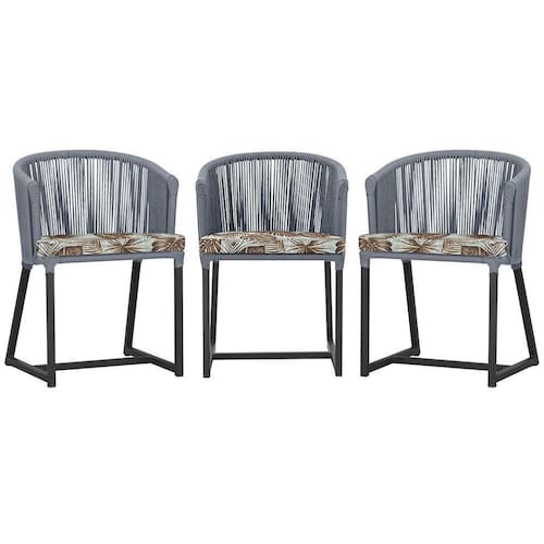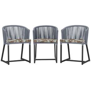 3 Cadeiras De Jantar Noronha Preta Corda Náutica E6 Trama Prata