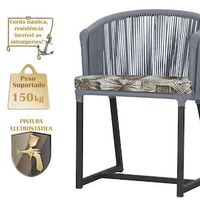 Descubra a Elegancia e Durabilidade da Cadeira Noronha. Combinando estilo e resistencia, esta cadeira traz o melhor do design contemporaneo em aluminio com micro pintura e acabamento em corda nautica. O estofado impermeavel completa o conforto e a funcionalidade, tornando-a ideal para ambientes externos e internos. Qualidade e elegancia que transformam qualquer espaco. Adicione um toque de sofisticacao e conforto ao seu espaco com a cadeira Noronha.
