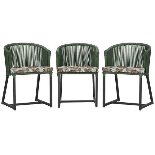 3 Cadeiras De Jantar Noronha Preta Corda Náutica E6 Trama Verde
