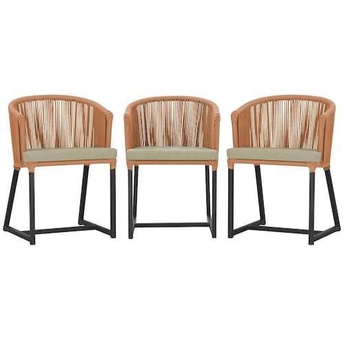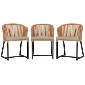 3 Cadeiras De Jantar Noronha Preta Corda Náutica E7 Trama Terra Cota
