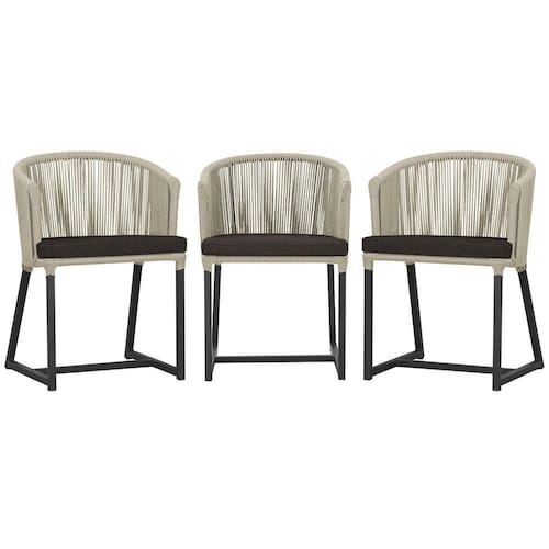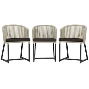 3 Cadeiras De Jantar Noronha Preta Corda Náutica E9 Trama Rami