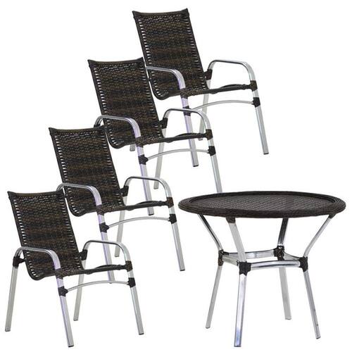 3 Cadeiras Emily e Mesa Emily Tampo Tramado em Alumínio Trama - Marrom Escuro