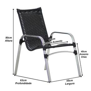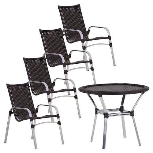 3 Cadeiras Emily e Mesa Emily Tampo Tramado em Alumínio Trama - Marrom Chocolate