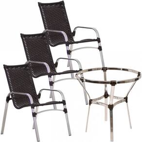 3 Cadeiras Emily E Mesa Sem tampo Alumínio Piscina Área - Marrom Cacau