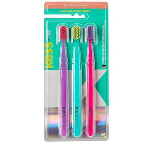 3 Escovas Dentais Pro Cerdas Extra Macias Coloridas Kess - Escova Dental